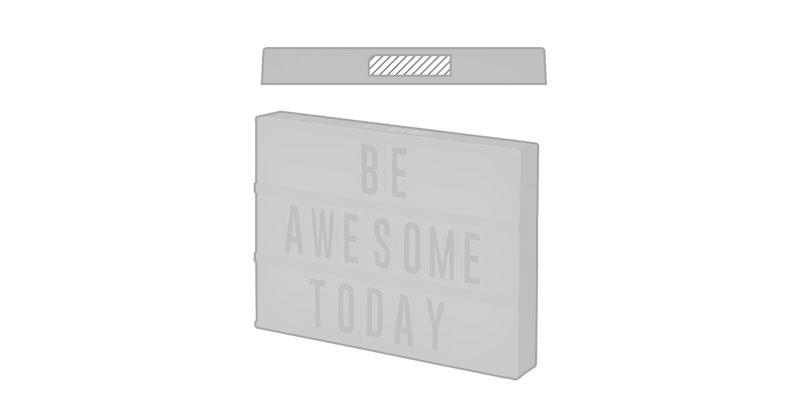 Une boite lumineuse en plastique PP qui peut contenir jusqu'à 85 lettres et symboles en trois lignes. Muni d'un interrupteur marche/arrêt situé sur le côté de la boite. Sa dimension est de 30 cm x 22 cm x 4,5 cm sur un poids de 330 g. Livré dans un coffret-cadeau blanc avec trois piles AA inclus. Un gadget décoratif personnalisable conçu pour diffuser un message publicitaire. Parfait pour une utilisation sans modération durant les moments festivals.