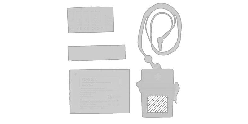 Trousse à pharmacie fabriqué en plastique. Accessoire composé de Tampon de gaze, deux compresses à alcool, une lingette antiseptique et cinq pansements dans une boite transparente rouge avec tour de cou. Il est indispensable d’être équipé d’une trousse de secours adaptée, pour pouvoir prodiguer les premiers soins rapidement et efficacement, en cas de blessures. C'est un produit authentique et conforme à la norme EN13485 et disponible en plusieurs couleurs. Outil de promotion dans divers événements, surtout médicale.